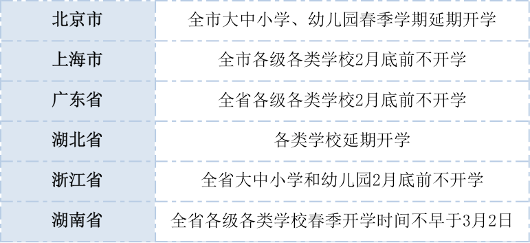 部分省市推遲開學(xué)時間